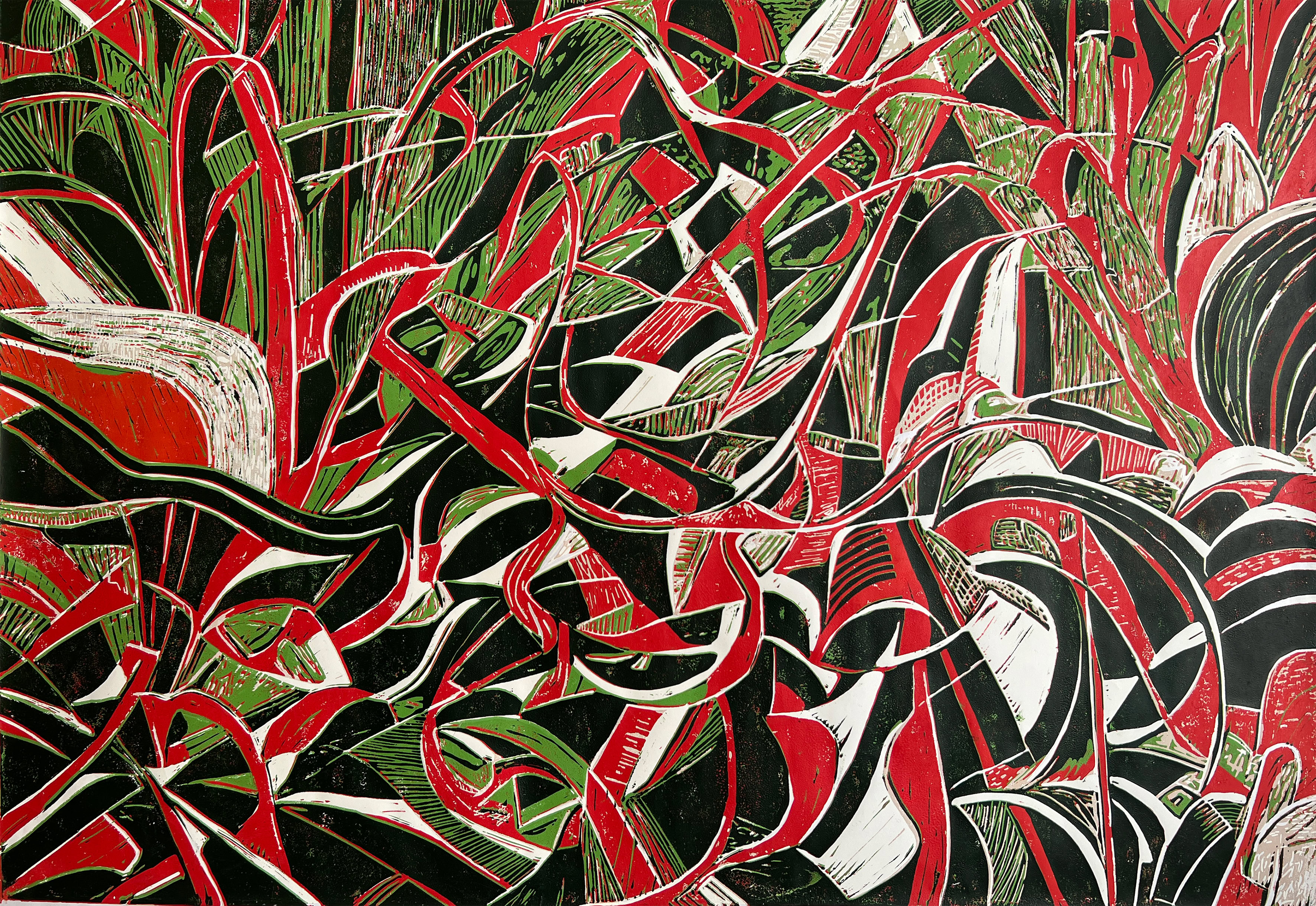 Hortus #1 2025 | KI+Linolschnitt auf Papier/Leinwand (Auflage 20) | 38 x 56