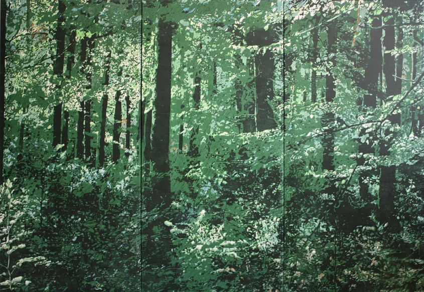 Waldstück 2012/13, Linolschnitt auf Leinwand, 5 Farb- und Formvarianten (3-tlg.), 145 x 210 cm